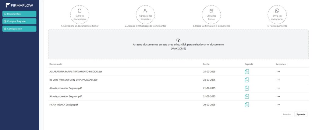 Firma Flow es un software de firma electrónica avanzada que permite firmar documentos de manera segura y legalmente válida a través de WhatsApp.